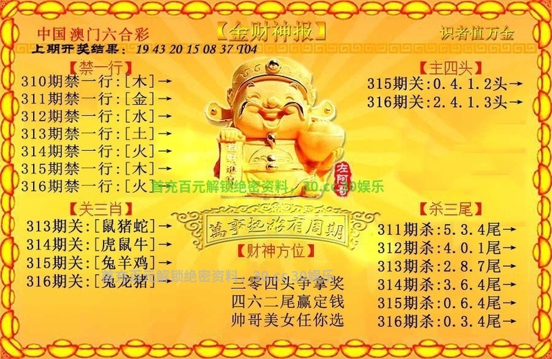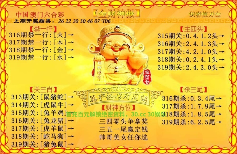 318期:🐰三头中特🐰【013头】开:鼠06中